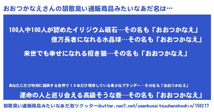 | ヘコむあだ名 | 『おおつかなえ(笑)』『つくし』 |