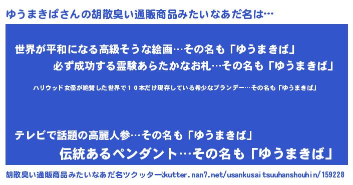 | 意味不明あだ名 | 『住所不定無職ゆうまきば(74歳)』 |