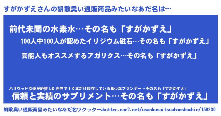 | 意味不明あだ名 | 『自称すがかずえ』『永久保存すがかずえ』 |