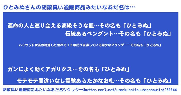 | 意味不明あだ名 | 『住所不定無職ひとみぬ(84歳)』 |