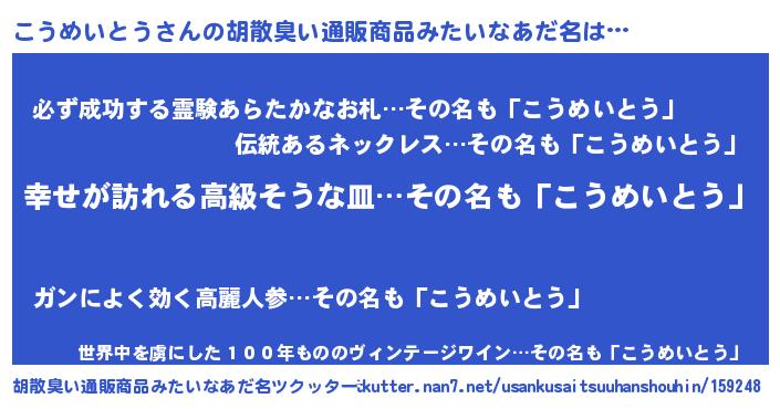 | 意味不明あだ名 | 『こうめいとうフォーエバー』 |