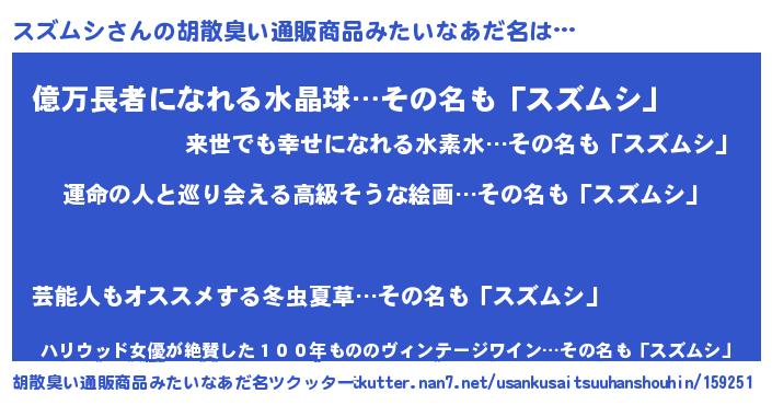 | 恥ずかしいあだ名 | 『スズっちょ』『プリティースズムシ』 |