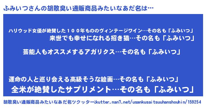 | 意味不明あだ名 | 『自称ふみいつ』『永久保存ふみいつ』 |