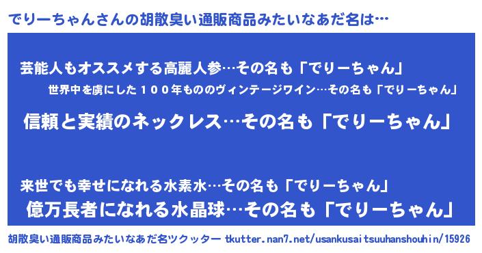 | ヘコむあだ名 | 『でりっぺ』『でりふぇ~』『豆乳』 |