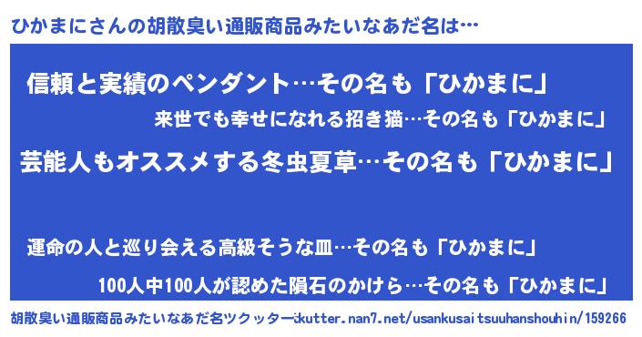 | 意味不明あだ名 | 『自称ひかまに』『もやし科ひかまに属』 |