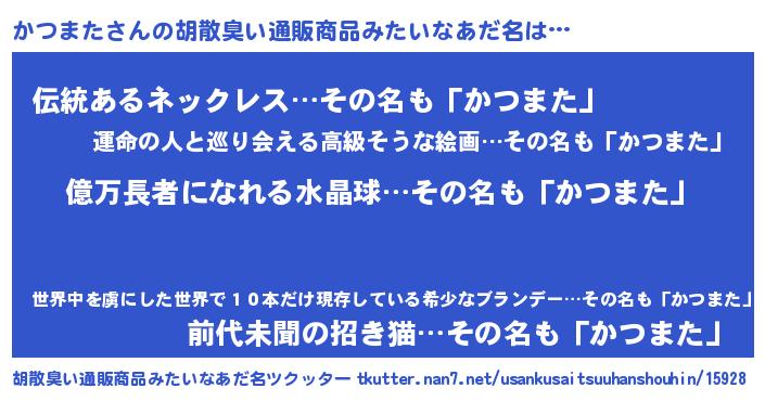 | ヒーロー風カッコイイあだ名 | 『スーパーカツマタ』『幻影騎士カツ』 |