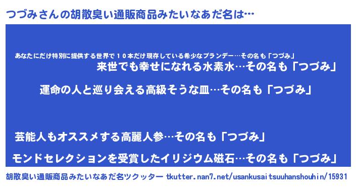 | ファンタジー風あだ名 | 『エターナルツヅミー』『ヴァルツヅーナ』 |