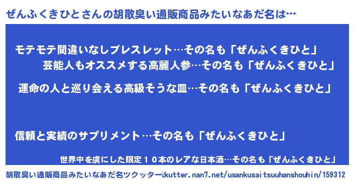 | 男性向けラノベタイトル風あだ名 | 『ぜんふくきひとに滅ぼされるだけの簡単なお仕事です』 |