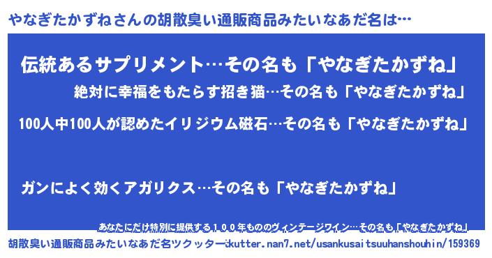 | 意味不明あだ名 | 『眠気覚ましガムやなぎたかずね味』 |