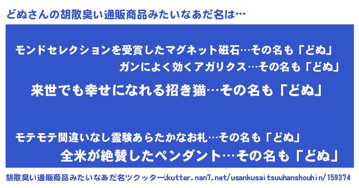 | ヒーロー風カッコイイあだ名 | 『ネオドヌ』『慈愛の使者どぬ』 |