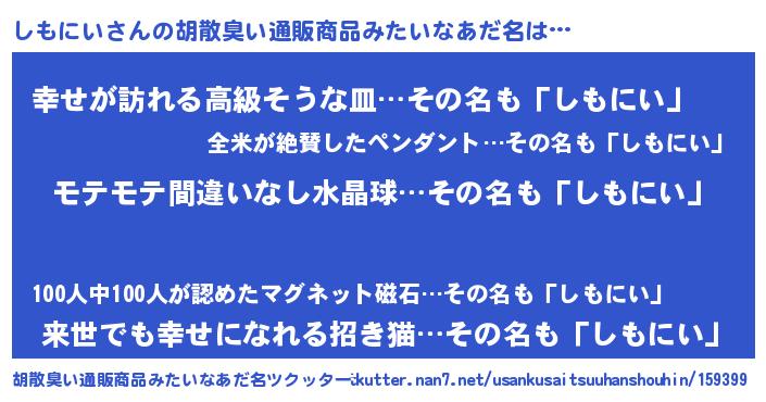 | ヘコむあだ名 | 『しもふぇ~』『牛乳』『しも太郎』 |