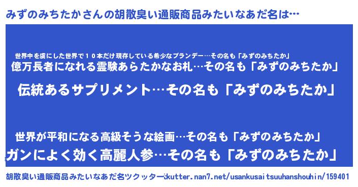 | 意味不明あだ名 | 『とにかく怪しいみずのみちたか』 |