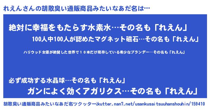 | 男性向けラノベタイトル風あだ名 | 『緋弾のレエン』『はたらくれえんさま!』 |