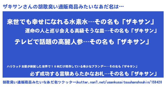 | 意味不明あだ名 | 『自称ザキサン』『永久保存ザキサン』 |