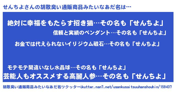 | ヘコむあだ名 | 『せんちよ(爆)』『せんお』『牛乳』 |