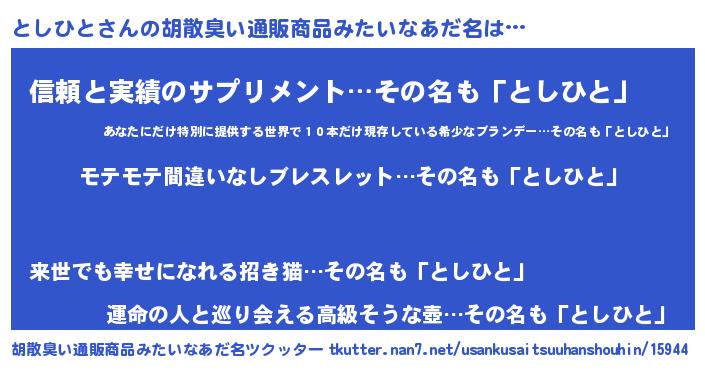 | 恥ずかしいあだ名 | 『プリティーとしひと』『トシリンリン』 |