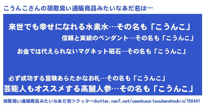 | ヒーロー風カッコイイあだ名 | 『友情の使者こうんこ』『ネオコウンコ』 |