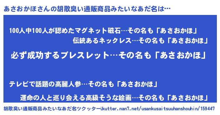 | 肩書あだ名 | 『あさおかほ社長』『あさおかほ助教授』 |