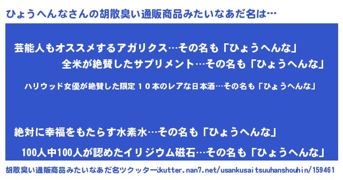 | 意味不明あだ名 | 『住所不定無職ひょうへんな(43歳)』 |