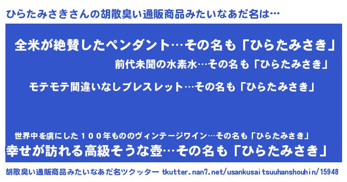 | 意味不明あだ名 | 『ペロリンひらたみさき』 |
