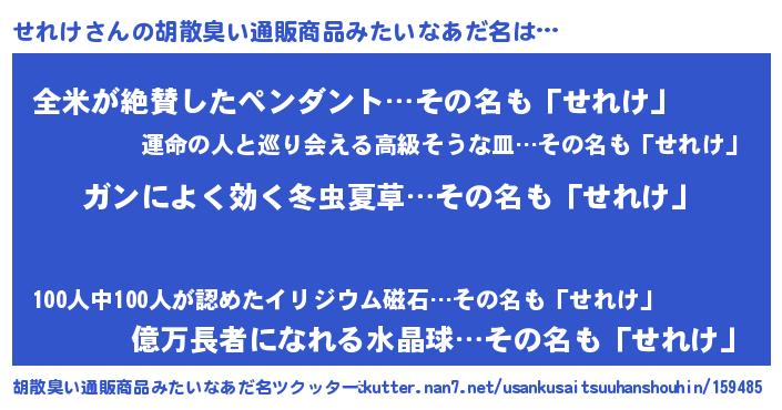 | 意味不明あだ名 | 『自称せれけ』『つくし科せれけ属』 |