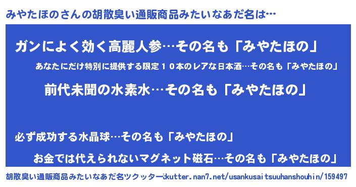 | 意味不明あだ名 | 『永久保存みやたほの』『自称みやたほの』 |