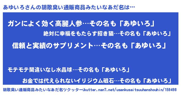 | ヘコむあだ名 | 『あゆを』『あゆいろ(小並感)』 |