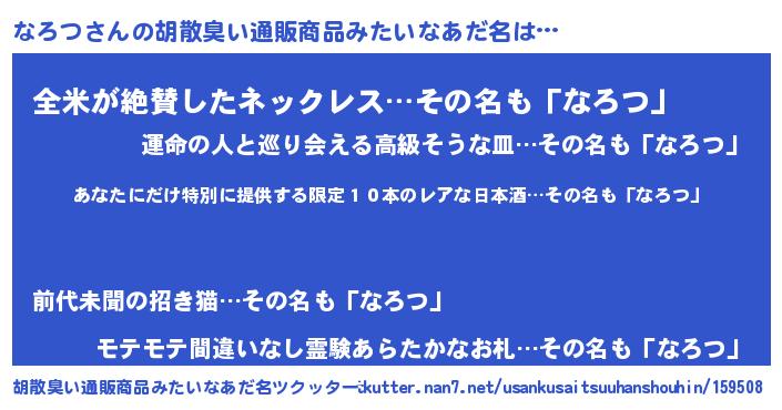 | 意味不明あだ名 | 『住所不定無職なろつ(39歳)』 |