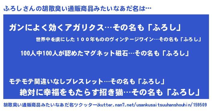 | ヘコむあだ名 | 『ふろし(笑)』『ふろにゅー』『豆乳』 |