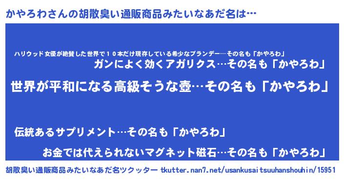 | 欧米人風あだ名 | 『かやろわクリステル』 |