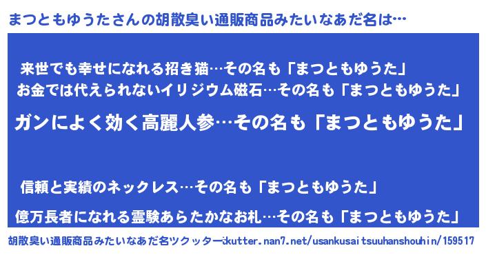 | ヘコむあだ名 | 『まつともゆうた(小並感)』『まつにゅー』 |
