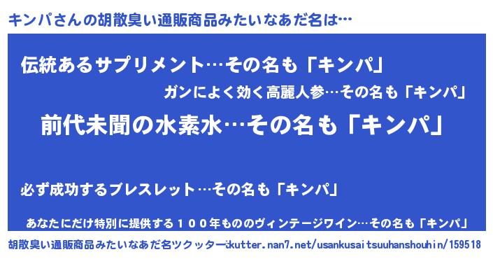 | ヘコむあだ名 | 『キンパ(遠い目)』『キンっぺ』 |