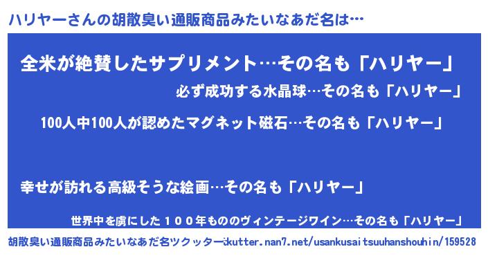 | ヘコむあだ名 | 『ハリお』『ハリにー』『なまこ酢』 |