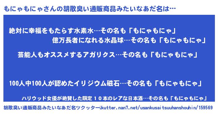 | ヘコむあだ名 | 『もにゃもにゃ(爆)』『もにもー』 |