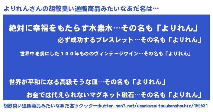 | 意味不明あだ名 | 『住所不定無職よりれん(1歳)』 |