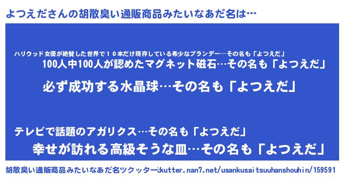 | 欧米人風あだ名 | 『マイケルよつえだ』『ダニエルよつえだ』 |