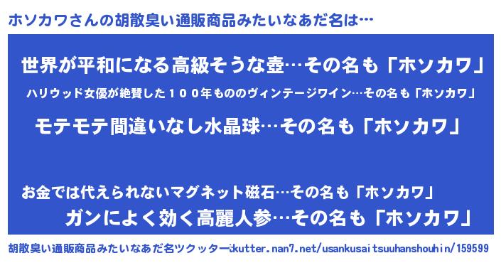 | ヒーロー風カッコイイあだ名 | 『スーパーホソカワ』『究極戦士ホソカワ』 |
