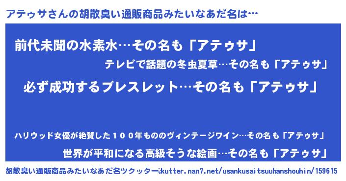 | 男性向けラノベタイトル風あだ名 | 『アテゥサの憂鬱』 |