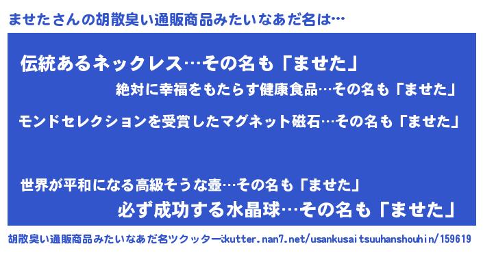 | ヒーロー風カッコイイあだ名 | 『慈愛の使者ませた』『銀牙騎士マセ』 |