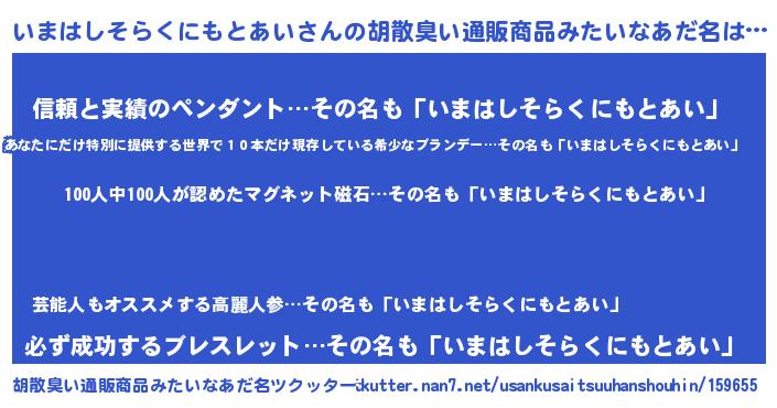 | 料理風あだ名 | 『いまはしそらくにもとあいのトマト煮』 |