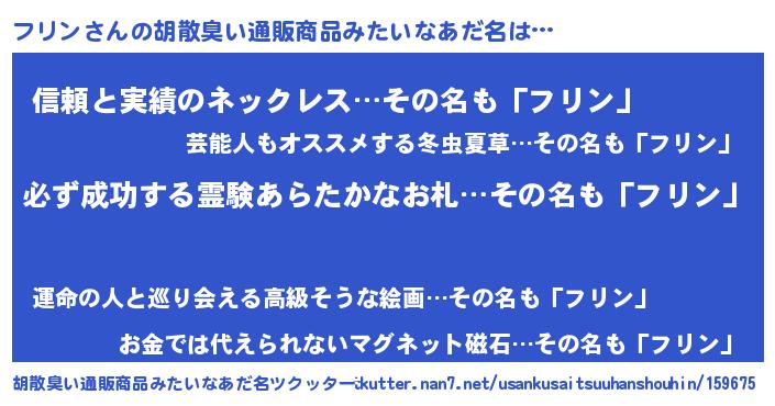 | 意味不明あだ名 | 『めかぶ科フリン属』『ペロリンフリン』 |