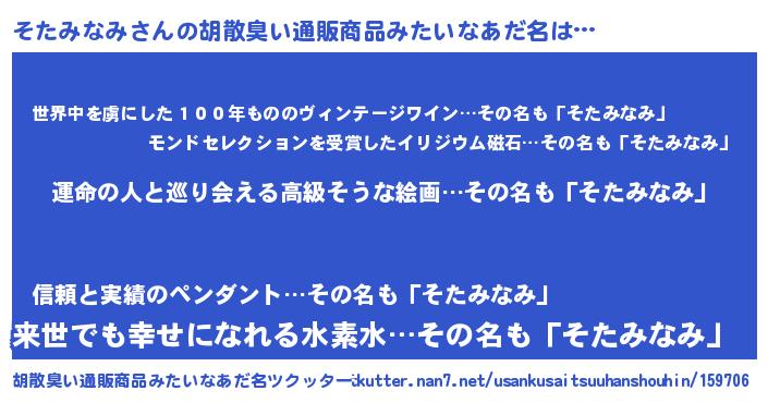 | ヘコむあだ名 | 『レバニラ』『そたみなみ(爆)』 |