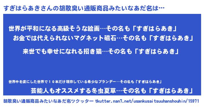 | 意味不明あだ名 | 『永久保存すぎはらあき』 |