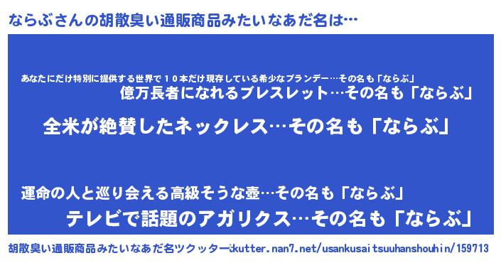 | ヘコむあだ名 | 『ならっ子』『ならもー』『なまこ酢』 |