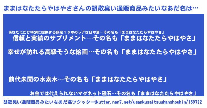 | 男性向けラノベタイトル風あだ名 | 『やはりままはなたたらやはやさの青春ラブコメはまちがっている 』 |