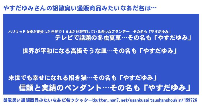 | 意味不明あだ名 | 『やすだゆみフォーエバー』 |