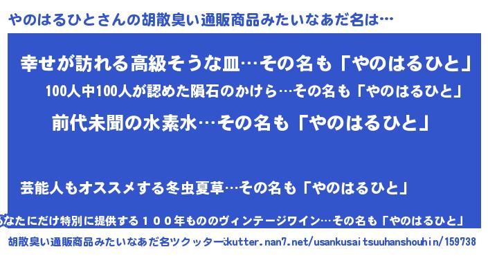 | 意味不明あだ名 | 『永久保存やのはるひと』 |