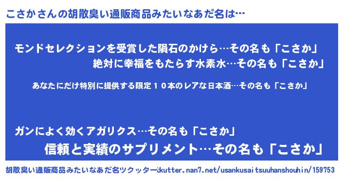 | 意味不明あだ名 | 『住所不定無職こさか(59歳)』『自称こさか』 |