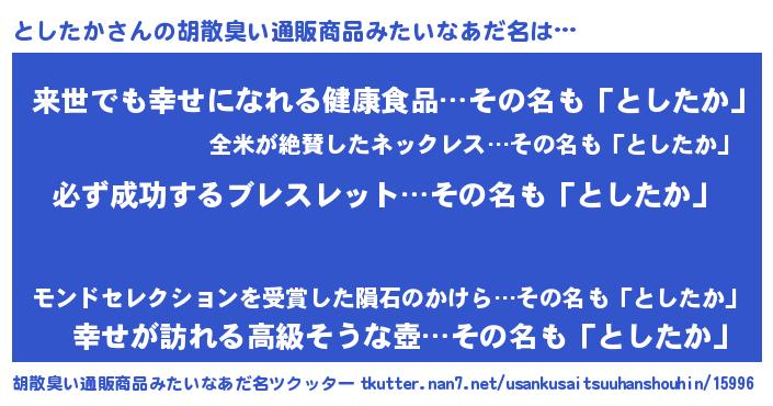| ヒーロー風カッコイイあだ名 | 『スーパートシタカ』『ネオトシタカ』 |
