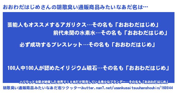 | ヘコむあだ名 | 『おおふぇ~』『おおわだはじめ(笑)』 |